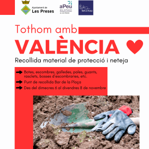 Durant la setmana hem estat treballant intensament per organitzar un punt de recollida de material amb l’objectiu d’ajudar les poblacions afectades per el DANA (València),